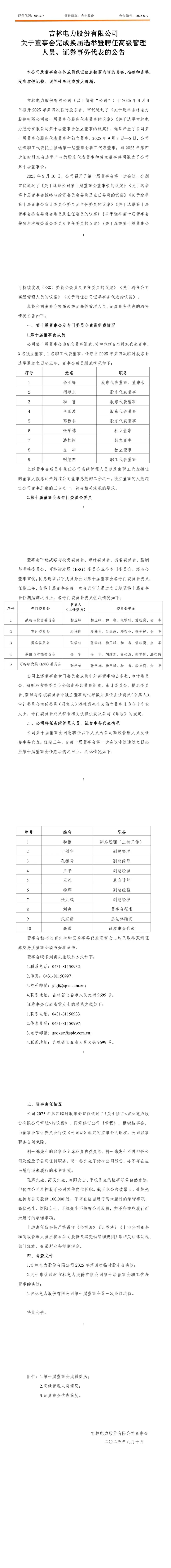 吉電股份發布公告宣布完成改選換屆,新一屆領導班子團隊確定