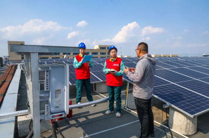 國網濟南供電公司工作人員在全省首家“光伏+儲能”虛擬電廠—濟南高新虛擬電廠開展現場服務