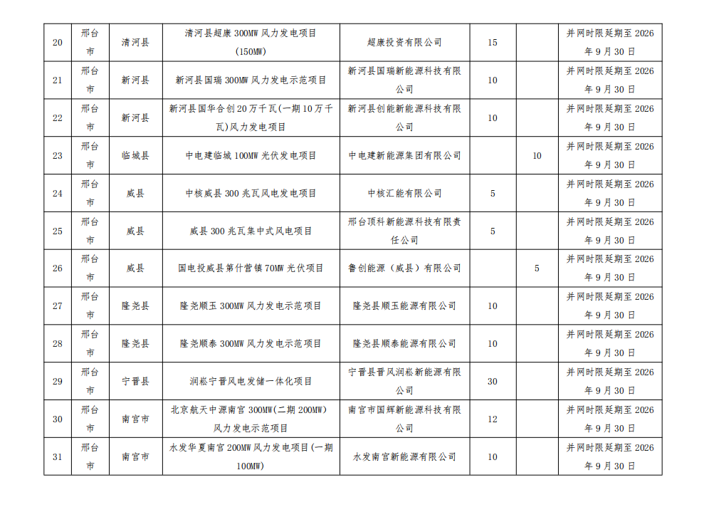 按照《河北省風(fēng)電、光伏發(fā)電項目開發(fā)建設(shè)管理辦法(試行)》要求,請各市進一步加強風(fēng)電、光伏發(fā)電項目管理,推動后續(xù)項目嚴(yán)格按照并網(wǎng)時限要求建成并網(wǎng),除不可抗力等客觀因素造成項目不能按期全容量投產(chǎn)的,未并網(wǎng)的項目一律取消、未并網(wǎng)的規(guī)模全部調(diào)減。