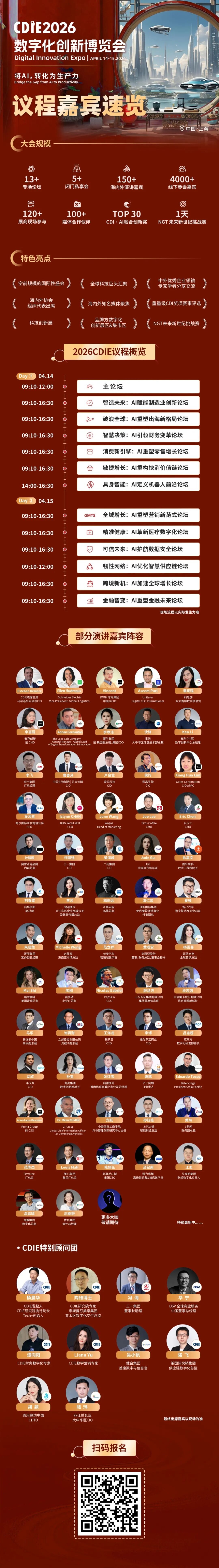 本次CDIE2026數字化創新博覽會已成功邀約數百位全球頂尖企業數字化領袖,他們將齊聚上海,分享前沿洞察。